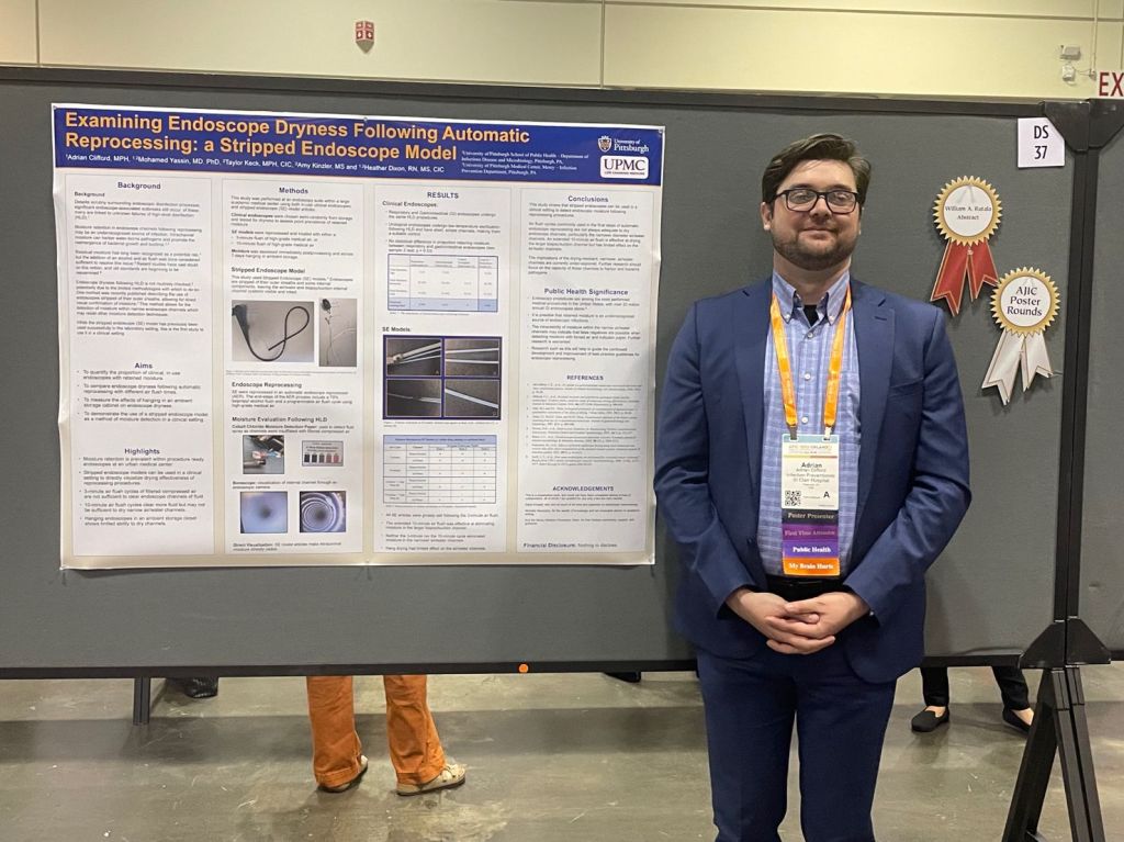 Mohamed was a coauthor for DS 37 – “Examining Endoscope Dryness Following Automated Reprocessing: A Stripped Endoscope Model,” a Poster recipient of the 2023 William A. Rutala Abstract Award. He was also a coauthor for the Poster ISR 66 – “Monitoring Operating Room(or) Traffic. Automated vs. Direct Observation,” and a coauthor for the Oral Abstracts: QAPI 22 – “Multidisciplinary Implementation of Published Surgical Site Infection Prevention Recommendations Is Associated with Improved Outcomes in Neurosurgical Patients” and ADS 02 – “How Does Blood Culture Collection Around the Time of Death Impact Mandated Reporting of Hospital Associated Infections?” He was also a co-presenter for the Lecture 3103 – “What’s in Your Endoscope? Ameliorations for Patient Safety.”